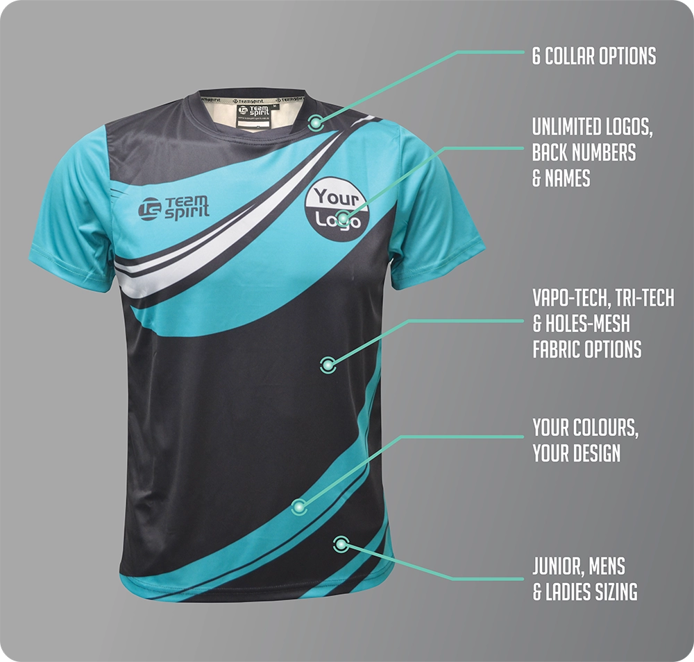 Elevate your football game with Team Spirit's custom soccer jerseys, tailored for ultimate performance. Our cutting-edge Vapo-Tech, Tri-mesh, and Holes-Mesh fabrics ensure players stay cool and collected on the field. Whether you're a player or supporter, our jerseys redefine comfort and style. With superior moisture management from Vapo-Tech and added breathability from Tri-mesh and Holes-Mesh, our jerseys enhance overall performance. Make a statement that is uniquely yours with our diverse collection.
